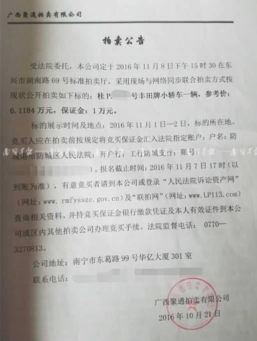 去年,南寧市民盧先生參與防城港市防城區(qū)人民法院的一起司法拍賣,沒想到拍到卻是一輛已經(jīng)被強(qiáng)制報(bào)廢的車輛。