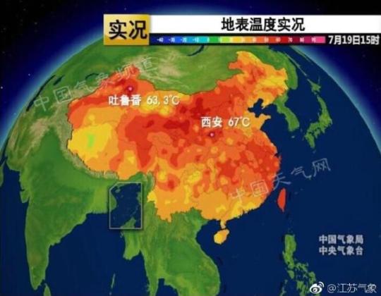 昨天在朋友圈瘋傳的一張?zhí)鞖鈭D片。圖片來自網(wǎng)絡(luò)地表溫度超過吐魯番