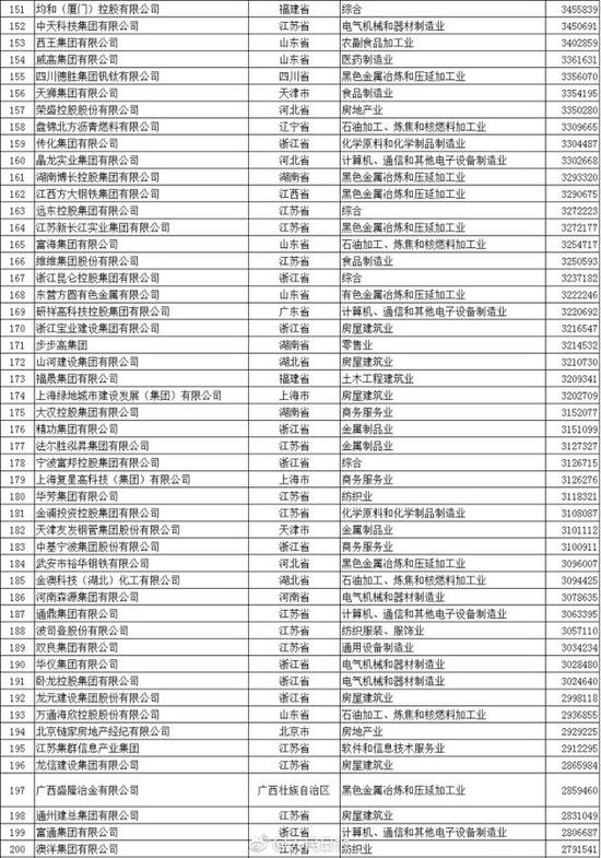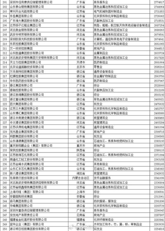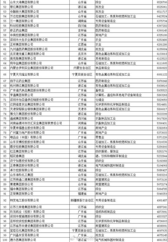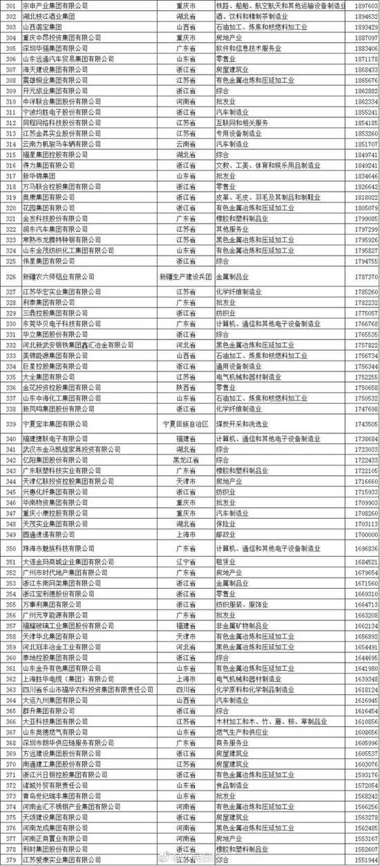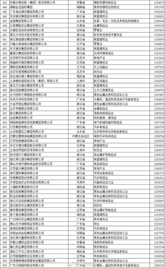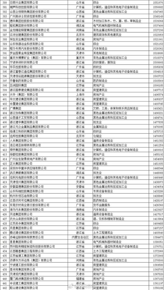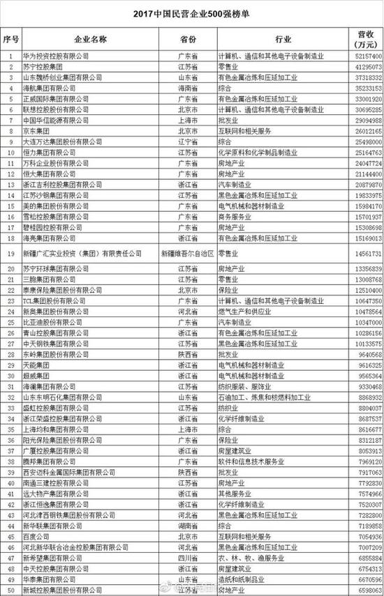 以下為2017中國民營企業(yè)500強(qiáng)榜單(來自人民日報微博):