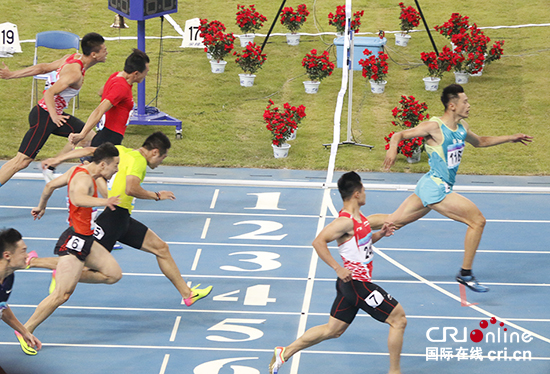 9月3日,2017年全運會男子100米決賽,謝震業(yè)以10秒04的成績獲得冠軍。這是他運動生涯第一次拿到全運會男子百米的冠軍。在賽后新聞發(fā)布會上,謝震業(yè)謙虛的表示自己能奪冠是因為分道的“運氣好”,而他也感謝了蘇炳添對自己的鞭策。