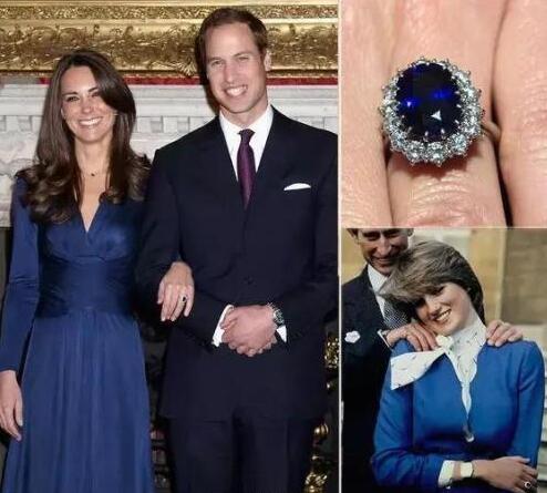 而后凱特王妃的訂婚戒指正是戴安娜王妃1981年的訂婚戒指,是枚白金藍(lán)寶石戒指,中間是一顆18克拉橢圓形藍(lán)寶石,周圍鑲14顆小鉆石。
