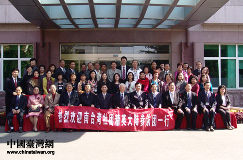 周鐵農(nóng)(第一排中)和出席座談會(huì)的部分民革中央領(lǐng)導(dǎo)與 “南臺(tái)灣社團(tuán)精英大陸參訪團(tuán)”合影 (圖/文高斯斯)