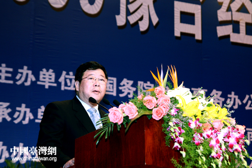 國務(wù)院臺辦副主任孫亞夫致辭表示,將重點推進六項工作,為促進兩岸經(jīng)濟合作做好事、辦實事(中國臺灣網(wǎng) 李徽 攝)