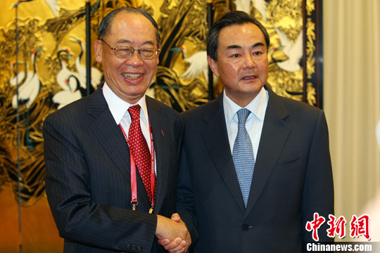 4月15日,中共中央臺辦主任王毅為前來出席博鰲亞洲論壇年會的臺灣“兩岸共同市場基金會”最高顧問錢復(fù)一行舉行招待酒會。中新社發(fā) 毛建軍 攝