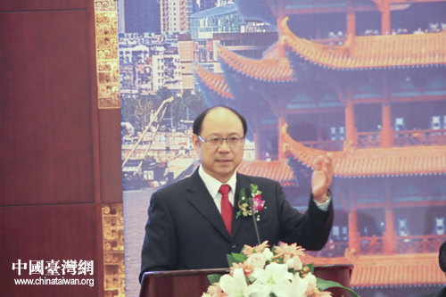 時(shí)維金秋,海峽兩岸各界朋友相聚“楚中第一繁盛之地”江城武漢,共襄第八屆“湖北·武漢臺(tái)灣周”盛會(huì),商合作,談發(fā)展,敘友情,很有意義。我謹(jǐn)代表中共中央臺(tái)灣工作辦公室、國(guó)務(wù)院臺(tái)灣事務(wù)辦公室、海峽兩岸關(guān)系協(xié)會(huì)對(duì)“第八屆湖北·武漢臺(tái)灣周”的開(kāi)幕表示熱烈祝賀!