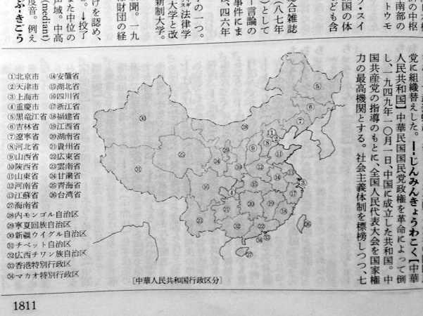 《廣辭苑》中的中國行政區(qū)劃圖。