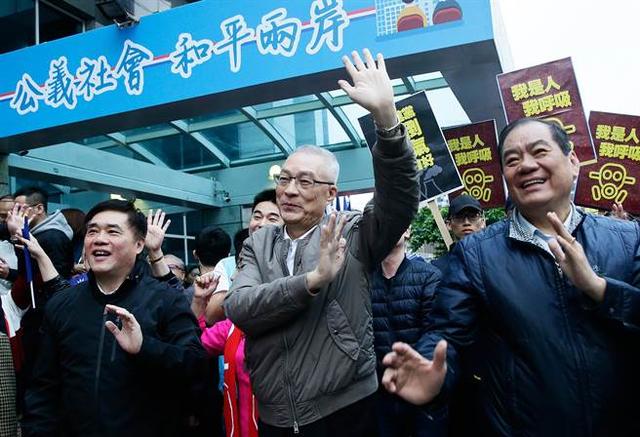 國民黨元旦升旗吳敦義喊‘團結(jié) 再執(zhí)政’ 結(jié)果旗子纏成一團飄不起來