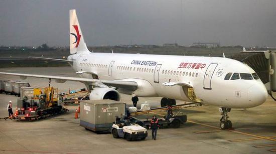 1月20日東方航空班機(jī)飛抵桃園機(jī)場。(圖:中時(shí)電子報(bào))