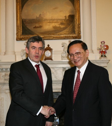 布朗說,英中關(guān)系正強(qiáng)有力地向前發(fā)展,兩國領(lǐng)導(dǎo)人交往密切,政治互信加深,雙方合作目標(biāo)明確。英國致力于深化同中國的全面戰(zhàn)略伙伴關(guān)系,期待著同中國加強(qiáng)合作。英方對實(shí)現(xiàn)兩國貿(mào)易新目標(biāo)充滿信心,希望通過兩國高級別經(jīng)濟(jì)財(cái)金對話機(jī)制促進(jìn)雙邊經(jīng)貿(mào)關(guān)系,歡迎中投公司等中國企業(yè)來英投資。英方愿擴(kuò)大兩國科技、教育、醫(yī)學(xué)等領(lǐng)域合作,鼓勵(lì)文化交流,全力支持辦好“時(shí)代中國”活動(dòng)。