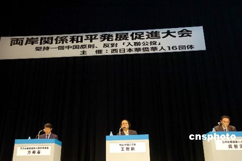 。吃拢保度眨魅毡救A僑華人16團(tuán)體約300人在大阪聯(lián)合舉行“兩岸關(guān)系和平發(fā)展促進(jìn)大會”并發(fā)表了題為“強(qiáng)烈反對臺灣當(dāng)局的‘入聯(lián)公投’,堅決維護(hù)兩岸和平發(fā)展”的聯(lián)合聲明。圖為王智新、吳智深、方蘇春等旅日學(xué)者在大會上就“入聯(lián)公投”的背景、“臺獨(dú)”勢力的發(fā)展與日本、海外華人華僑對兩岸關(guān)系的態(tài)度等問題進(jìn)行討論。 中新社發(fā) 朱沿華 攝