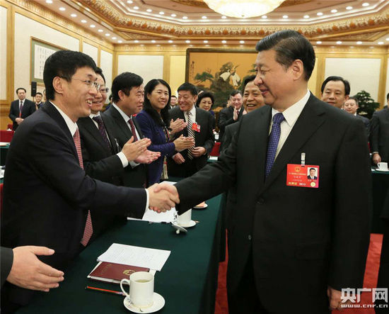 央廣網(wǎng)北京3月7日消息(記者馬闖)3月7日上午,中共中央總書記、國家主席、中央軍委主席習近平來到十二屆全國人大四次會議黑龍江代表團參加審議。