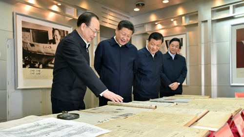 2月19日,中共中央總書記、國家主席、中央軍委主席習近平在北京主持召開黨的新聞輿論工作座談會,并到中央新聞單位調(diào)研。這是習近平在人民日報社了解人民日報發(fā)展歷程。新華社記者 李濤 攝