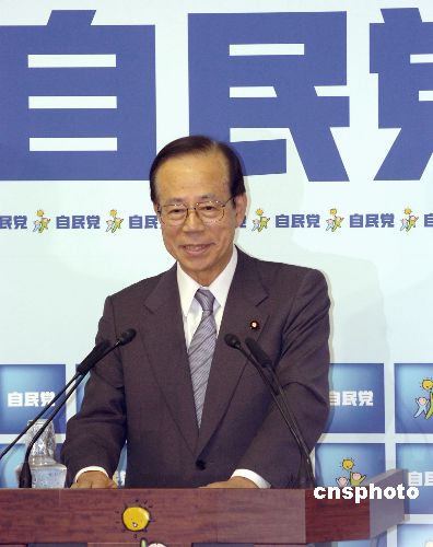 資料圖:在9月23日下午舉行的日本自民黨總裁選舉中,福田康夫以330票對(duì)197票擊敗另一候選人麻生太郎,當(dāng)選為日本自民黨第22任總裁。 中新社發(fā) 滕劍峰 攝