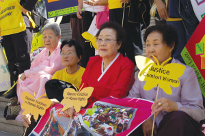 在示威活動現(xiàn)場的數(shù)名韓裔老人正是“慰安婦”屈辱歷史的真實(shí)見證人。其中,80高齡的李云素女士(音譯Young Soo Lee)于1944年被日本軍人送去了位于臺灣新竹的“慰安所”。在那里,她和其他少女反復(fù)遭受日軍的強(qiáng)暴和毒打,都患上了性病,許多還被強(qiáng)行注射毒品,有的未滿20歲便慘死在水溝邊。當(dāng)時的李云素年僅16歲,是所有少女中最年幼的。
