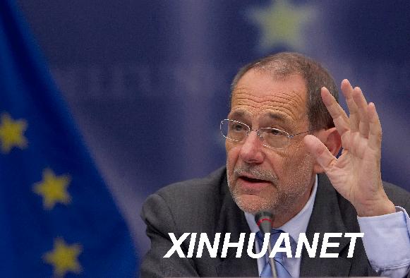 7月23日,在位于比利時首都布魯塞爾的歐盟總部,歐盟負責外交和安全政策的高級代表索拉納出席記者招待會并強調(diào),歐盟仍希望通過談判解決科索沃最終地位問題,并將與美國和俄羅斯加強合作,尋求推進科最終地位進程的途徑。新華社 記者 徐金泉 攝