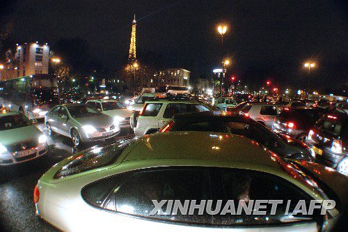 11月20日,在法國(guó)首都巴黎的埃菲爾鐵塔附近,因公交公司罷工導(dǎo)致下班時(shí)分的道路十分擁堵。新華社/路透