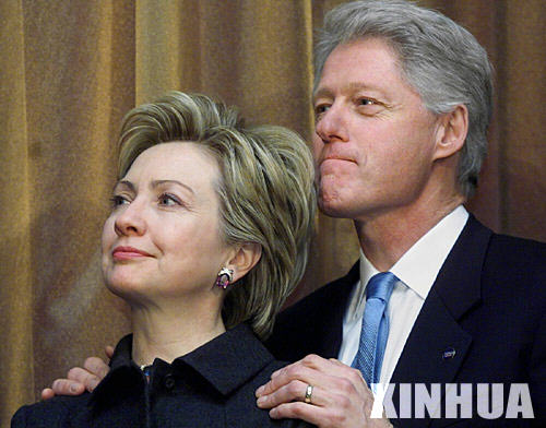 資料圖片:希拉里(左)與丈夫克林頓。 新華社發(fā)