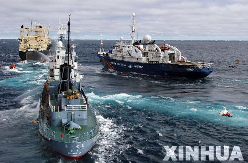 資料圖片:2005年12月21日,綠色和平組織船只“希望”號(hào)(右)試圖阻止兩艘日本漁船捕鯨。 當(dāng)日,“希望”號(hào)上的綠色和平組織成員與一支日本捕鯨船隊(duì)正面交鋒,阻止其捕鯨。綠色和平組織希望以此引起國(guó)際社會(huì)的關(guān)注,早日終結(jié)捕鯨的行為。雖然國(guó)際捕鯨委員會(huì)已禁止商業(yè)捕鯨,但日本一直以“科學(xué)研究”為名持續(xù)進(jìn)行捕鯨活動(dòng)。 新華社發(fā)