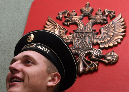 2007年12月2日,一名俄黑海艦隊(duì)水兵在基地整裝待發(fā)。法新社