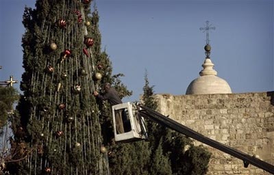 15日當(dāng)天,伯利恒大街上紛紛掛起了鈴鐺和圣誕老人形狀的燈飾。盡管在西岸地區(qū)只有一部份居民會(huì)慶祝圣誕節(jié),但是伯利恒被認(rèn)為是耶穌誕生地,因此當(dāng)?shù)孛磕甑氖フQ氣氛也會(huì)非常熱烈。