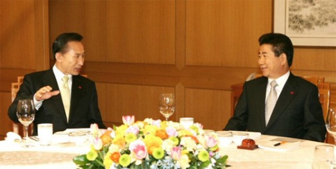 據(jù)韓國《東亞日報(bào)》報(bào)道,雙方就政權(quán)交接方案,朝核問題,東北亞局勢,韓美自由貿(mào)易協(xié)定(FTA),崇南源油泄露事故等國政現(xiàn)案全局交換了意見。盧總統(tǒng)向李明博當(dāng)選人表示會積極協(xié)助政權(quán)交接,李當(dāng)選人則承諾了公職社會的安定。