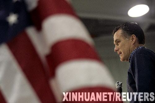 1月2日,在美國艾奧瓦州,共和黨競(jìng)選人、前馬薩諸塞州州長(zhǎng)羅姆尼參加競(jìng)選活動(dòng)。美國中西部的艾奧瓦州將于1月3日舉行2008年美國總統(tǒng)選舉首場(chǎng)預(yù)選。 新華社/路透