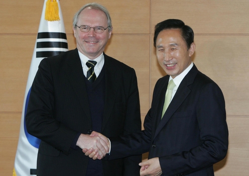 希爾與李明博會面(韓聯(lián)社圖)