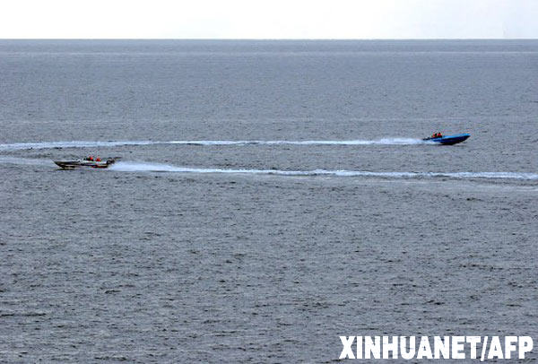 這是美國(guó)海軍1月6日公布的照片,顯示被懷疑為伊朗革命衛(wèi)隊(duì)的快艇1月6日在霍爾木茲海峽國(guó)際水域的美國(guó)軍艦附近游弋。1月8日,美國(guó)總統(tǒng)布什稱,6日美國(guó)和伊朗艦艇在霍爾木茲海峽水域?qū)χ攀录且晾蕦?duì)美國(guó)的挑釁。 新華社/法新