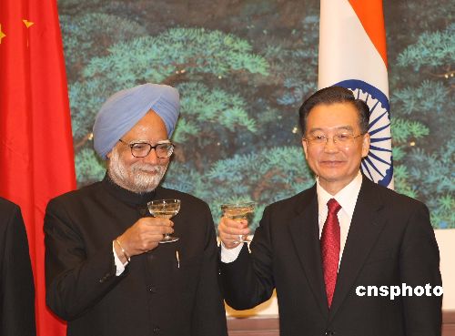 1月14日,中國(guó)國(guó)務(wù)院總理溫家寶與印度總理辛格在北京人民大會(huì)堂舉行會(huì)談。 中新社發(fā) 盛佳鵬 攝