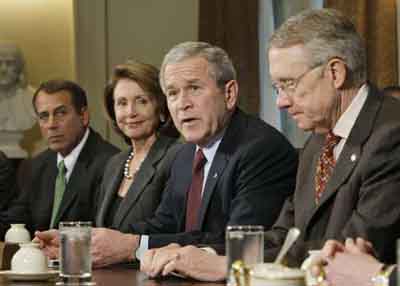 美國總統(tǒng)布什22日在白宮會見美國國會兩黨領導人