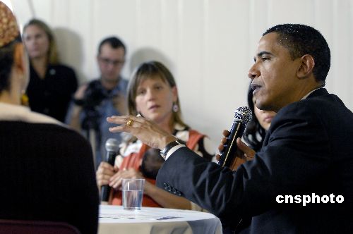 一月十七日,美國總統(tǒng)參選人奧巴馬在舊金山與四位不同族裔的年輕單身母親談健保和稅務政策,爭取選票。 中新社發(fā) 陳鋼 攝