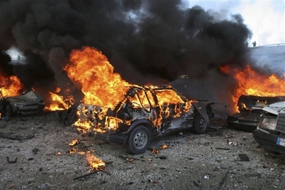 2007年6月,黎巴嫩國會(huì)議員瓦里德?埃多遭遇汽車炸彈襲擊喪生;9月,黎巴嫩議員加奈姆被暗殺;12月,黎巴嫩軍方將領(lǐng)哈吉(Franois el-Hajj)在汽車炸彈襲擊中遇難。一個(gè)多星期以前,貝魯特發(fā)生的一起汽車炸彈襲擊事件造成美國駐黎巴嫩大使館的一輛汽車在爆炸中受損,20多名平民傷亡。 |