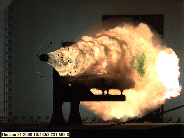 海軍作戰(zhàn)部長加里·拉夫黑德以及海軍研究局局長威廉·蘭迪,在達(dá)爾格倫的海軍水面作戰(zhàn)研究中心觀看了這次試射的實(shí)況轉(zhuǎn)播。在經(jīng)過大約4分鐘充電之后,鋁彈以7馬赫的速度(每秒2500米)飛出電磁炮的軌道,隨后擊中目標(biāo)。