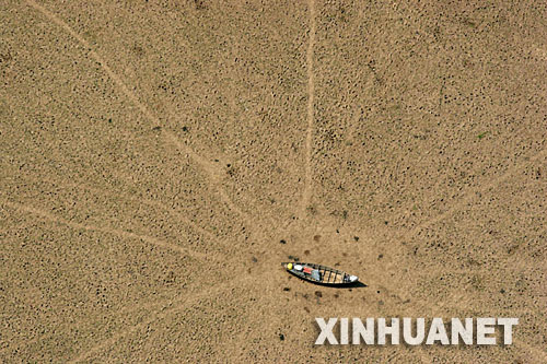這張拍攝于2005年10月26日的照片顯示,一艘小船擱淺在巴西庫魯阿伊湖干涸的湖床上。 新華社發(fā)
