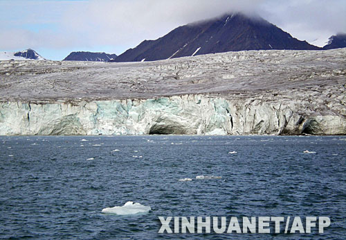 資料圖片:這是位于北極附近的挪威斯瓦爾巴群島的一條冰川(2007年8月23日攝)。自1966年以來,這條冰川已縮減了3.5公里。研究表明,北極地區(qū)氣候變暖的速度是地球其他地區(qū)氣候變暖速度的兩倍,這對(duì)北極地區(qū)的生態(tài)系統(tǒng)構(gòu)成了嚴(yán)重威脅。 新華社/法新
