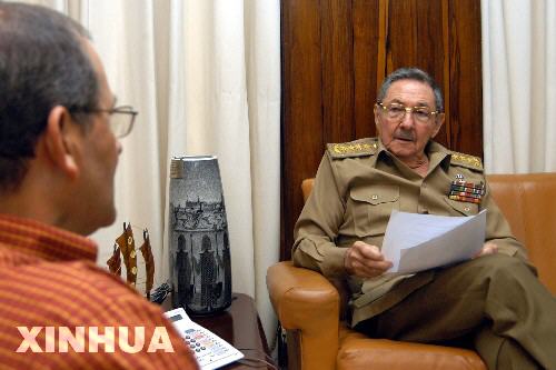 2006年8月17日,勞爾·卡斯特羅(右)正在接受古巴共產(chǎn)黨中央機(jī)關(guān)報(bào)《格拉瑪報(bào)》的專訪。他在接受采訪時(shí)說,古巴領(lǐng)導(dǎo)人卡斯特羅的身體正“逐步令人滿意地恢復(fù)”。 新華社發(fā)