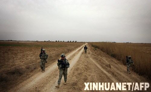 3月10日,美軍士兵在伊拉克迪亞拉省的一個(gè)村莊巡邏。駐伊拉克美軍當(dāng)日宣布,5名美軍士兵當(dāng)天在巴格達(dá)遭遇炸彈襲擊身亡。 新華社/法新