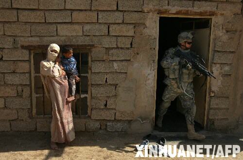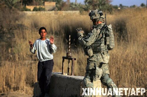 3月8日,一名駐伊美軍士兵在伊拉克的迪亞拉省搜查當(dāng)?shù)鼐用褡》俊P氯A社/法新