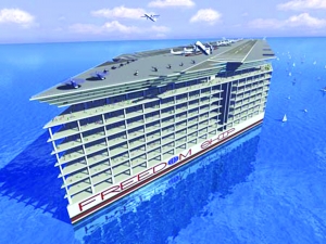 美國“自由之船國際公司”正打算建造一座史無前例的“世界最大的超級郵輪”——“自由之船”。它1400米長、37層樓高,個頭相當于目前全球最大郵輪“瑪麗女王二世”號的4倍。船上有多達1.8萬套“海景房”、劇院、賭場、商業(yè)中心,甚至還有機場、學(xué)校和醫(yī)院,可供6萬人同時居住。事實上,“自由之船”的外形已不像任何一艘現(xiàn)有的巨型郵輪,倒更像是科幻小說中漂浮在海面上的“機器島”——億萬富豪們可以常年“定居”在這座“海上城市”上,環(huán)繞世界各地海洋漂流!據(jù)設(shè)計師稱,“自由之船”總造價估計高達110億美元,有望在3年內(nèi)完工。 |