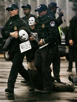 據(jù)香港《文匯報(bào)》報(bào)道,在美國(guó)國(guó)稅局大樓,100多名反戰(zhàn)人士企圖封鎖入口,其中數(shù)人甚至越過(guò)圍攔在門(mén)前靜坐。示威者稱,針對(duì)國(guó)稅局是因?yàn)樗鼡芸钯Y助伊戰(zhàn),警方到場(chǎng)后拘捕了32人,并迅速清場(chǎng)。