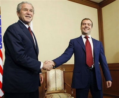 據(jù)香港《文匯報》報道,布什贊揚普京誠實坦白,會說出心中所想。普京下月就會卸任總統(tǒng),由梅德韋杰夫接任。布什與梅氏首次會面后,贊賞對方為人直接,指出梅氏給他的印象非常正面,是個聰明人,很期待與他合作。梅氏表示會跟隨普京的足跡,尋求與美國發(fā)展更深厚的關系。峰會結束,布什昨午已啟程返美。