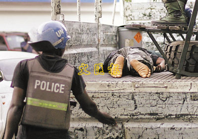 不幸被槍殺的維和士兵尸體。