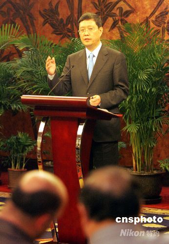 圖為中國(guó)外交部部長(zhǎng)助理何亞非會(huì)后向記者介紹情況。 中新社發(fā) 潘索菲 攝