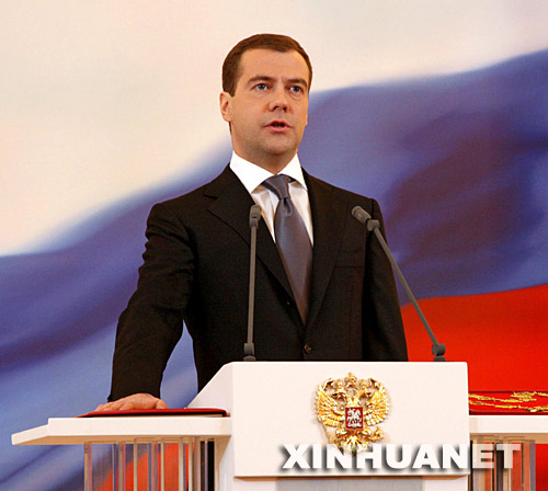 5月7日,在俄羅斯首都莫斯科,俄羅斯當(dāng)選總統(tǒng)梅德韋杰夫宣誓就職。當(dāng)天,梅德韋杰夫正式就任俄羅斯聯(lián)邦總統(tǒng)。 新華社發(fā)