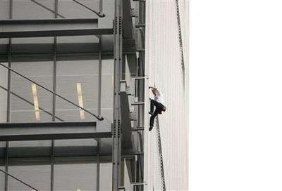 中新網(wǎng)6月6日電 綜合媒體報道,有“蜘蛛俠”之稱的法國人羅伯特5日中午,沒有任何保護(hù)措施徒手攀爬美國紐約時報大樓外墻,掛上呼吁環(huán)保的橫額。