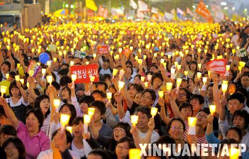 因進(jìn)口美國(guó)牛肉而引發(fā)的韓國(guó)民眾燭光示威已經(jīng)持續(xù)40多天了,并且在10日晚達(dá)到高潮,參與人數(shù)規(guī)模創(chuàng)下紀(jì)錄。隨著活動(dòng)持續(xù)升溫,“牛肉風(fēng)波”正演變?yōu)橐粓?chǎng)“清算”李明博政府失策乃至宣泄反美情緒的運(yùn)動(dòng)。示威主辦方發(fā)出“最后通牒”,不重啟牛肉談判,將發(fā)動(dòng)全面“倒李”運(yùn)動(dòng)。而隨著直播燭光示威的視頻網(wǎng)站逐漸增多,韓國(guó)市民開始熬夜觀看,并出現(xiàn)“上癮現(xiàn)象”。