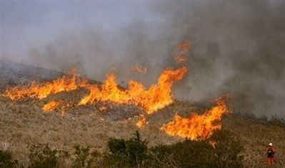 據(jù)悉,連日來,大約有5000到6000次閃電襲擊加州。施瓦辛格稱,22日晚上,他聽說有520個(gè)地方發(fā)生野火火災(zāi),到了23日早上,這個(gè)數(shù)字變成了700個(gè),截止到記者發(fā)稿,加州發(fā)生火情的地方達(dá)到了842處。 |