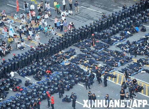 6月26日,在韓國(guó)首都首爾,防暴警察與抗議政府恢復(fù)進(jìn)口美國(guó)牛肉的民眾對(duì)峙。韓國(guó)政府6月25日決定,韓國(guó)將在本周內(nèi)恢復(fù)進(jìn)口美國(guó)牛肉。韓官方報(bào)紙也將正式刊登政府公告,公布美國(guó)牛肉進(jìn)口檢疫新標(biāo)準(zhǔn)。 新華社/法新