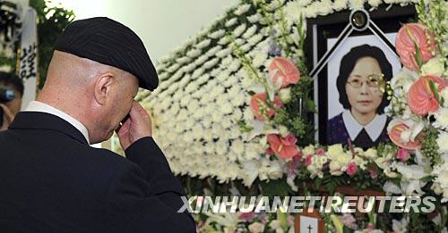 7月12日,在韓國(guó)首都首爾一家醫(yī)院舉行的葬禮上,被槍殺女游客的丈夫掩面哭泣。11日,這名赴朝鮮旅游的韓國(guó)婦女在朝鮮金剛山附近軍事禁區(qū)被朝方軍人開槍打死。死者尸體隨后被轉(zhuǎn)交給了韓方。 新華社/路透