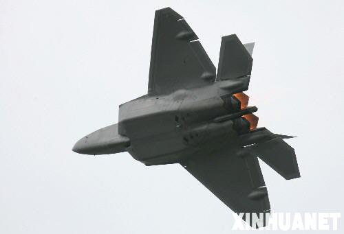 7月14日,在英國小鎮(zhèn)法恩伯勒舉行的國際航展上,美軍F22戰(zhàn)斗機進行飛行表演。當天,英國2008法恩伯勒國際航空展(又譯范堡羅航空展)拉開帷幕,航展將持續(xù)到20日,包括當今世界最大的民航客機——空中客車A380在內的最新民用和軍用飛機以及其它航空科技成果將在這里展出。新華社記者謝秀棟攝